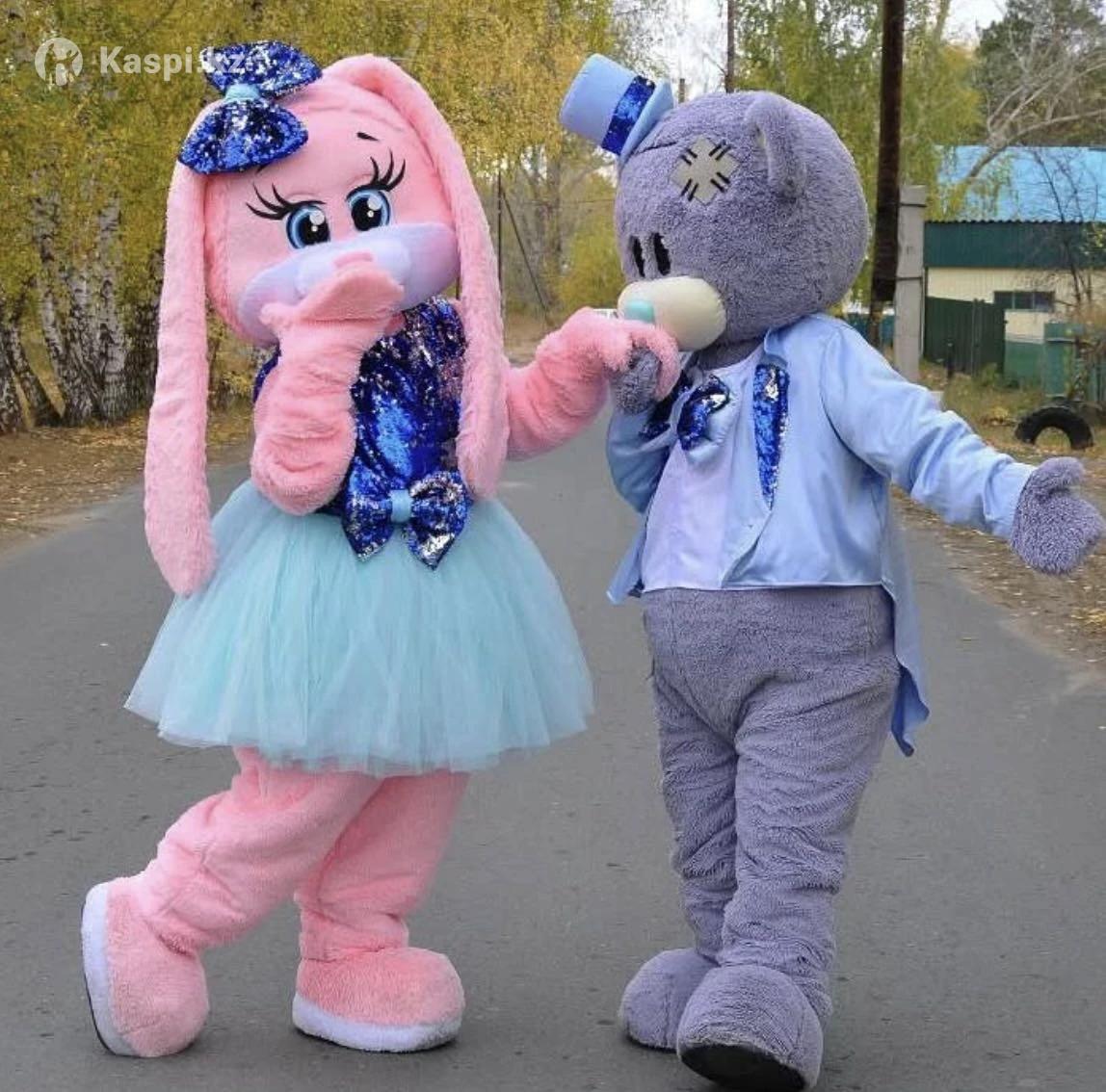 Продам два ростовых костюма Мишка + Зайка Подходят на рост до 2.20см В 🎁 два наряда смокинг для мишки и платье для зайки + цветное ленточное шоу. Отвечаю только на смс. Можно посмотреть✅ Рассрочка ✅
