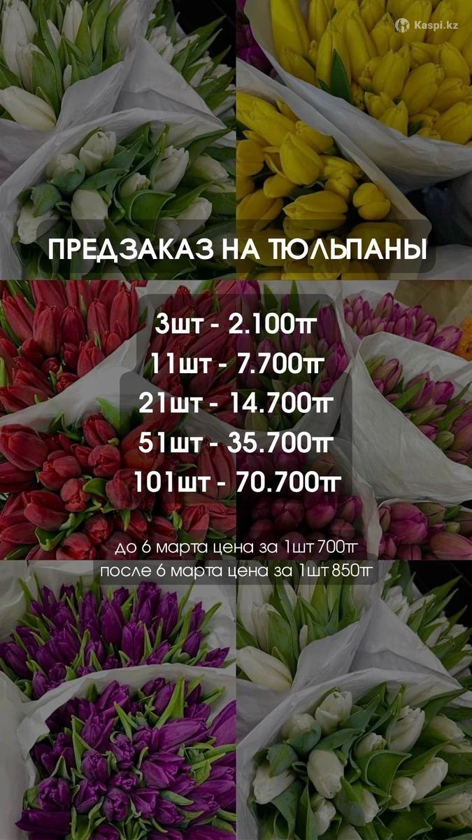 ОТКРЫТ ПРЕДЗАКАЗ НА ТЮЛЬПАНЫ К 8 МАРТА 🌷 Принимаем предзаказы на свежие тюльпаны к Международному женскому дню. 🌷 Высота стебля: 50–55 см 🌷 Крупный бутон: 6–7 см 🌷 Свежая поставка 💰 Цена по предзаказу — 700тг за 1 тюльпан 📅 Акция действует до 6 марта После 6 марта цена будет выше. Количество ограничено — перед праздником всегда ажиотаж. Бронируйте заранее, чтобы зафиксировать цену