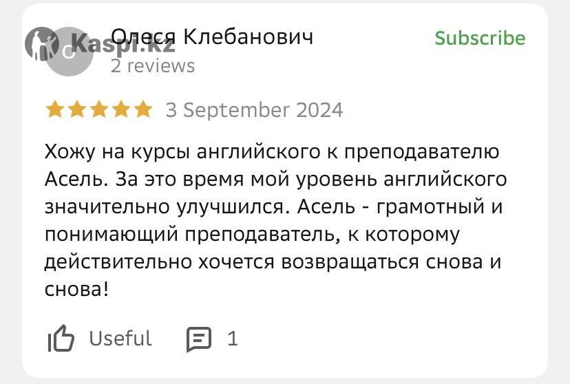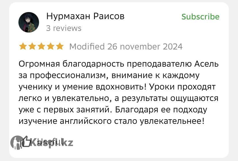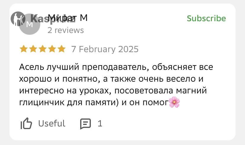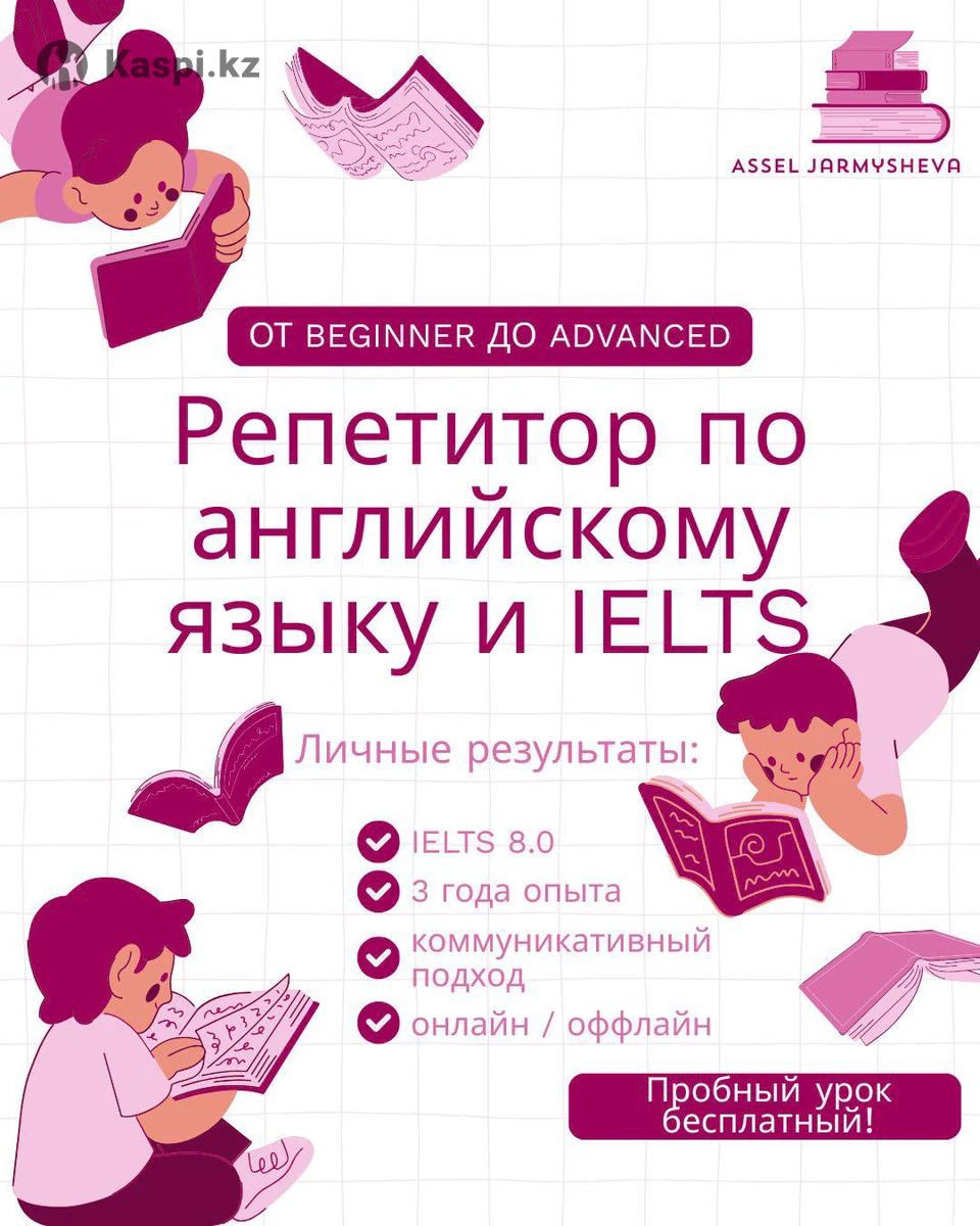Хочешь говорить свободно, готовиться к IELTS или просто подтянуть язык для учебы, работы или путешествий? Добро пожаловать! Меня зовут Асель Джармышева, я — репетитор по английскому языку с опытом более 3 лет и личным результатом IELTS 8.0. ⸻ 💼 Что тебя ждет: ✔️ Уроки от Beginner до Advanced ✔️ Подготовка к IELTS ✔️ Коммуникативный подход — говорим с первого занятия ✔️ Удобный формат: онлайн и оффлайн ✔️ Индивидуальный план под твои цели ⸻ 🎁 Пробный урок — бесплатный! Познакомимся, определим твой уровень и сделаем первый шаг к уверенной речи.