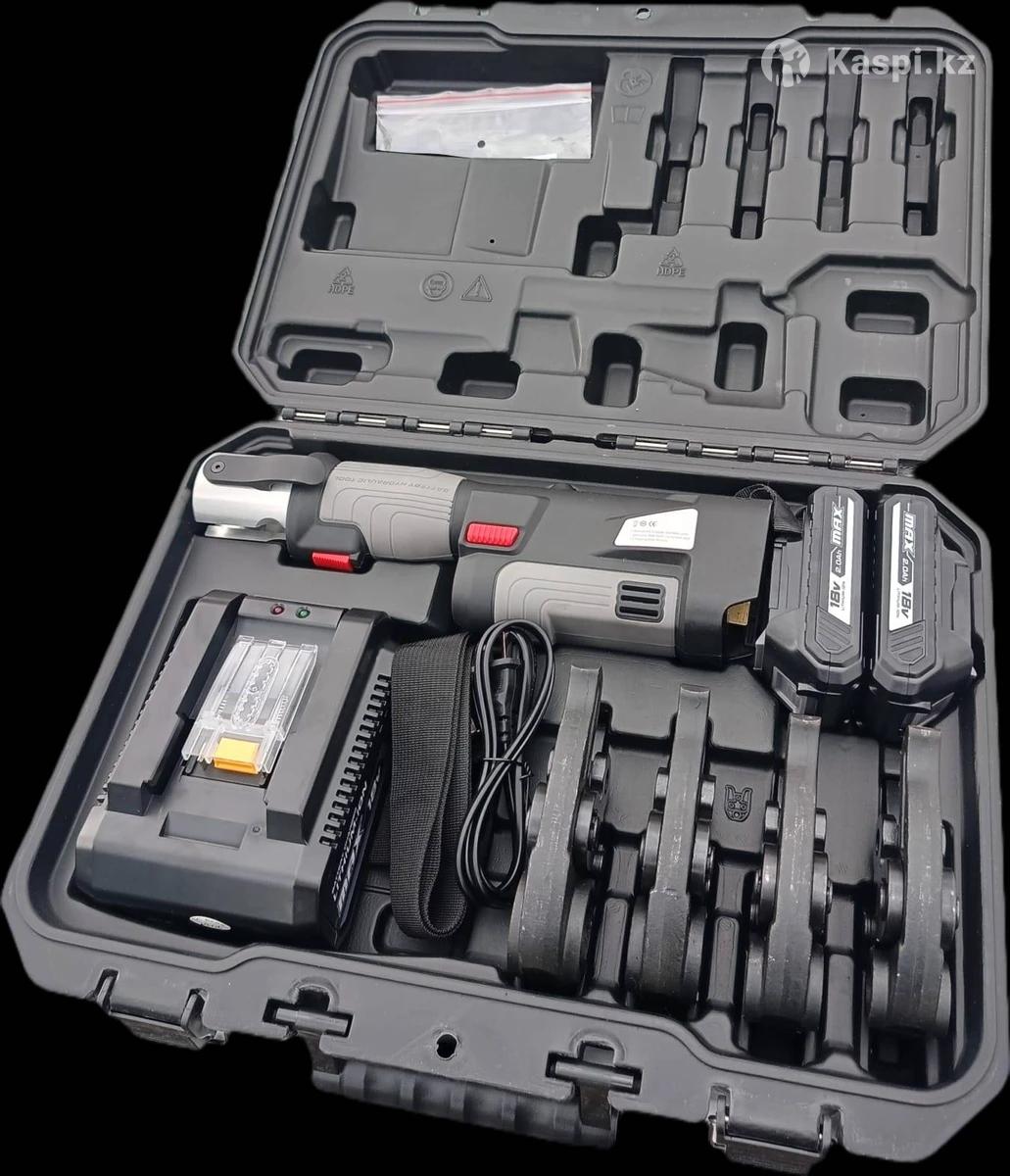 Пресс инструмент аккумуляторный. В комплекте 8 насадок. 4шт на м/п 16-20-26-32. 4шт на нержу 15-18-22-28.