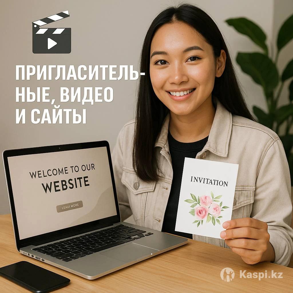 Пригласительные билеты, видео и сайт-презентации — под заказ в Атырау 🔹 Описание: Создаю пригласительные билеты, видео-приглашения и сайты-презентации под любое мероприятие — свадьба, выпускной, день рождения, реклама и другое. 📌 Предлагаю: — Дизайн пригласительных (печатные и электронные) — Видео-презентации и видео-приглашения — Сайт-презентация или сайт-визитка (одностраничник) ✅ Индивидуальный подход ✅ Учитываю ваши идеи и стиль ✅ Быстрое выполнение и качественный результат ✅ Можно онлайн, без встречи 💰 Цена: от 1500 до 3500 тенге (в зависимости от сложности) 📍 Город: Атырау 📩 Пишите в чат или — отвечу быстро!