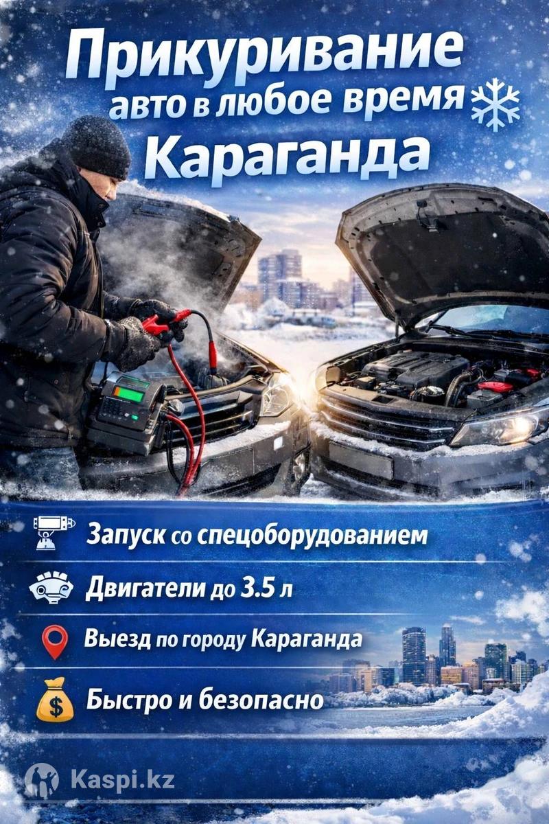 Прикуривание авто в любое время ❄️ Оказываю услугу запуска автомобиля со спецоборудованием. Подходит для машин с двигателем до 3.5 л. Быстро, безопасно, выезд на место. 💰Стоимость от 5000тг.