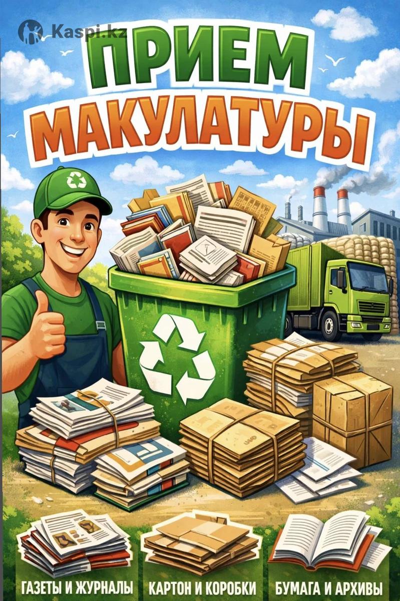Мы принимаем следующие виды макулатуры: — картон до (упаковочный, гофрированный и прочие виды. Картон, коробка) — бумага белая А4, архив различных типов. — книги, газеты и журналы, рекламные листовки и брошюры Условия работы: — Принимаем от физических и юридических лиц — Оплата наличными или переводом на банковскую карту — Возможен самовывоз при определённом объёме (условия оговариваются) — Работаем по городу Алматы и Алматинской области — Гарантируем честность, точный вес и своевременный расчёт