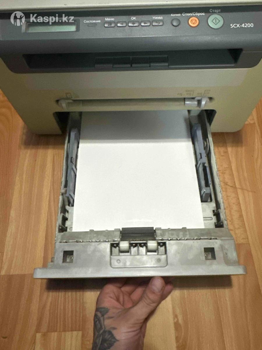 Принтер-сканер Samsung SCX-4200 Продаю многофункциональное устройство Samsung SCX-4200 (принтер, сканер, копир). Работает исправно, Можно использовать дома или в офисе. Подключается по USB. Есть экран и панель управления. Характеристики: Тип: лазерный (черно-белый) Функции: печать, сканирование, копирование Формат бумаги: A4 Скорость печати: до 18 стр/мин Совместимость: Windows, macOS (через драйверы Samsung/HP