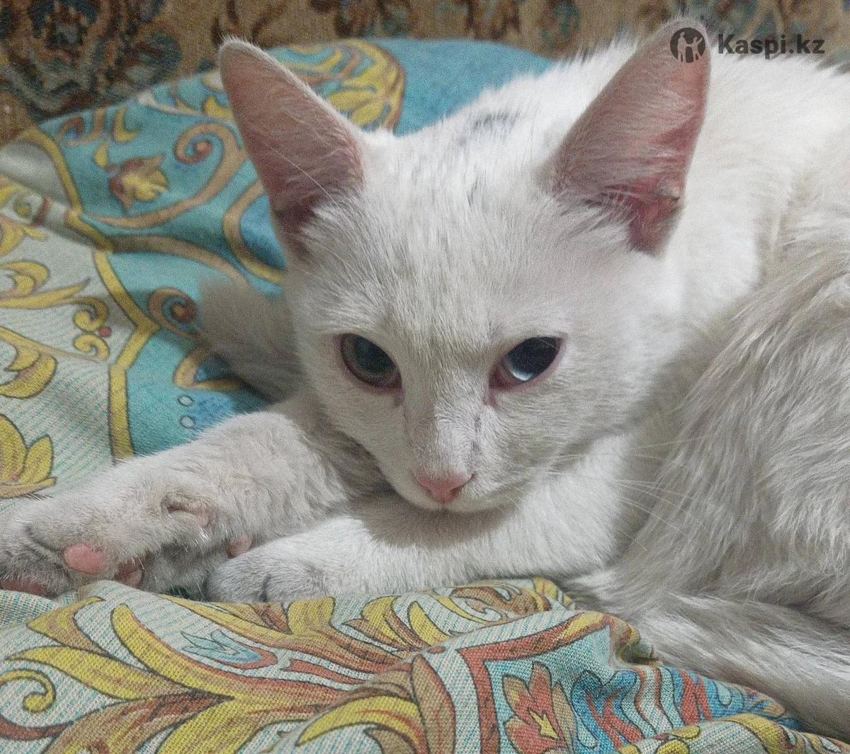 Пристраивается в ответственные руки котенок девочка белая разноглазая.Возраст 5 месяцев.На лоток приучена.От всего обработана.В семью без маленьких детей и животных.Доставим.