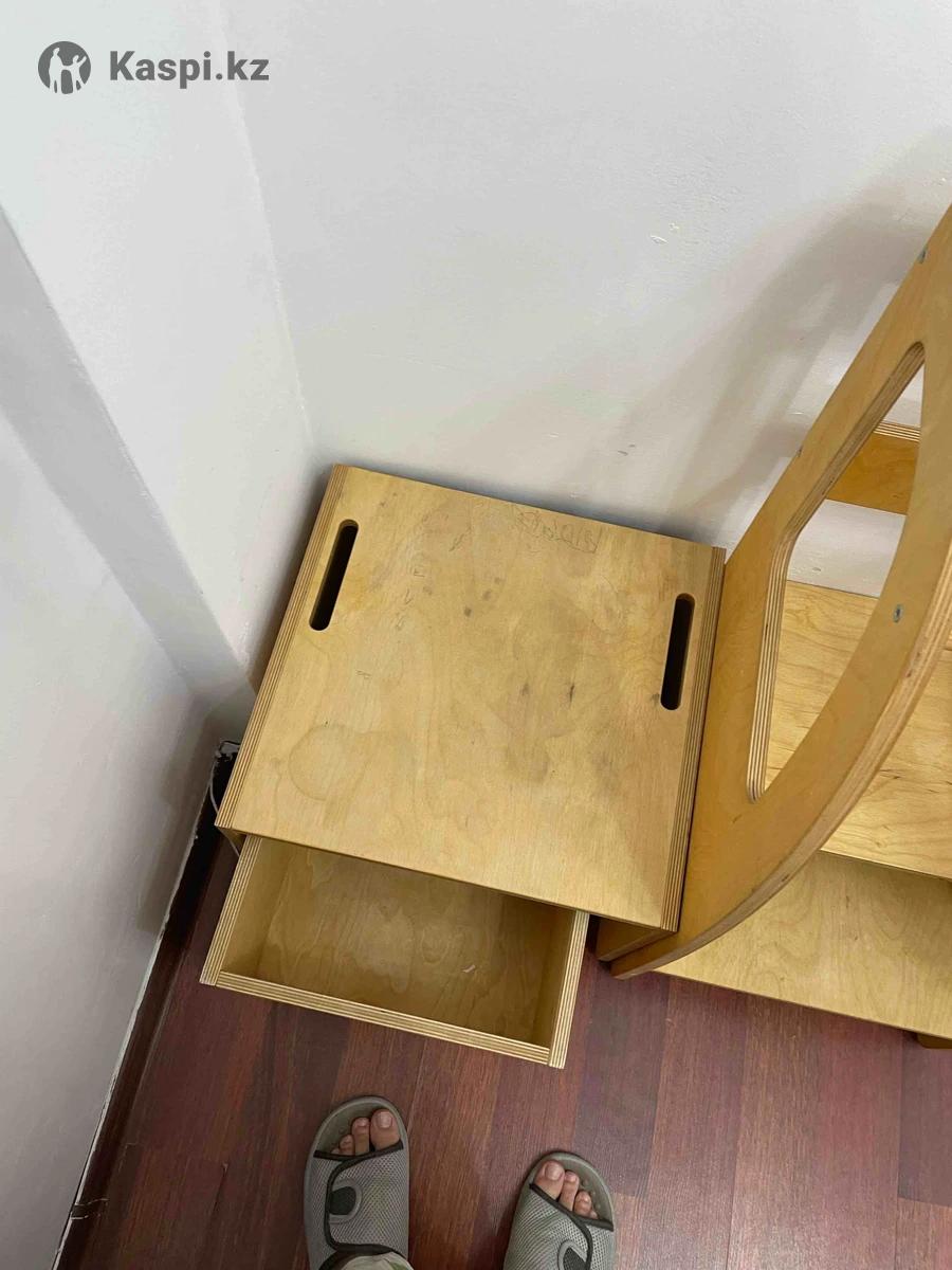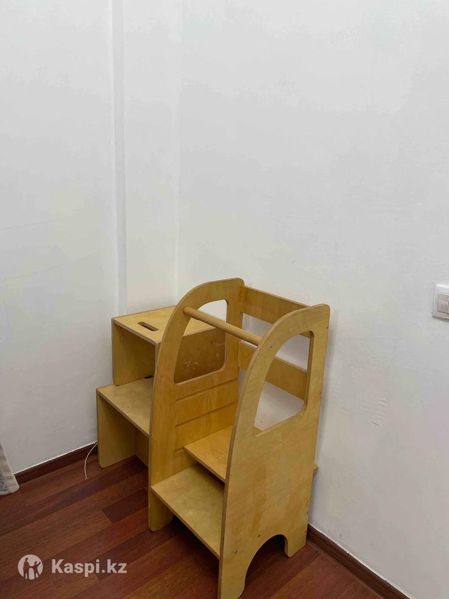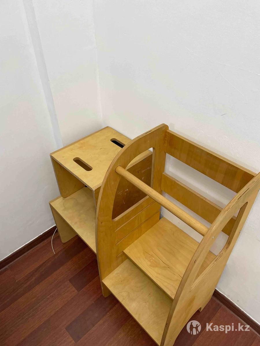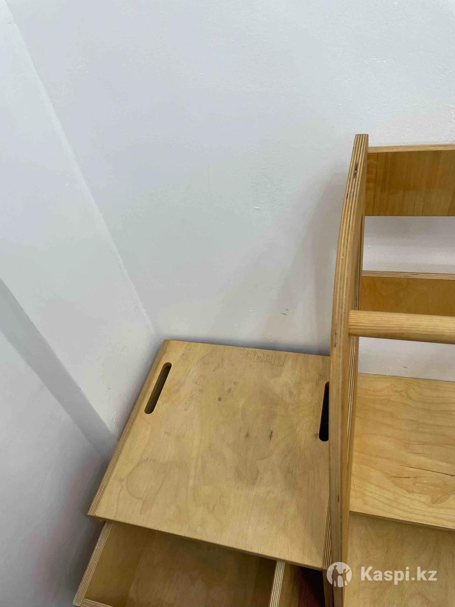 Продается из натурального дерева детский стульчик и башня. Они оба из одной серии и фирмы. Натуральное дерево, царапин не имеет. В отличном состоянии. Пятна есть, не имею возможности их удалить. Очень удобные оба в использовании, ребенок сам садится есть туда и сам встает с нее. А башня очень удобна при готовке например, когда ребенок рядом помогает маме, высота башни регулируется. Качество очень хорошее. Покупали за очень дорого, продаем, там как ребенок перерос уже. Стульчик например от 1 года до 6 лет помещается. Башня с 1 года и до 7/8 лет Можно оформить в рассрочку ЖК Алатау