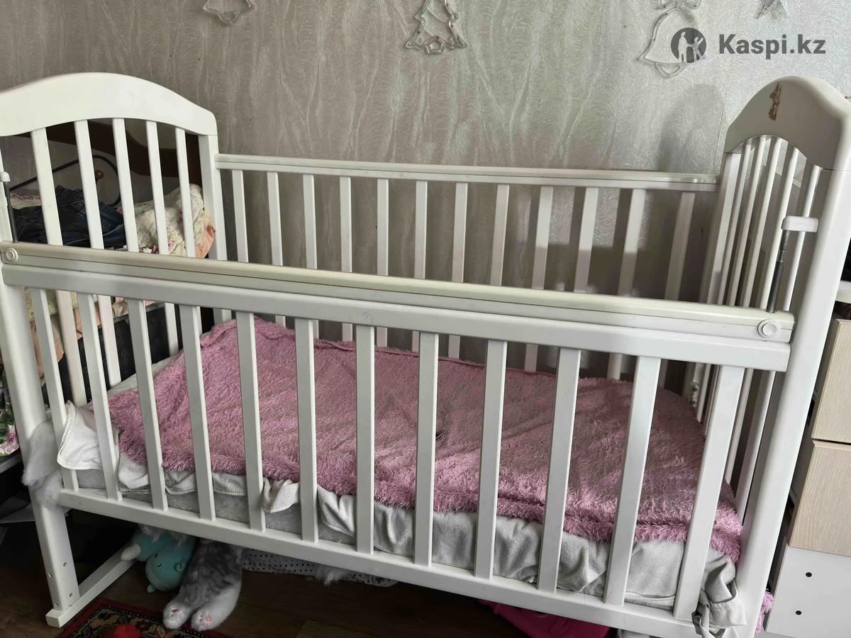 Белая кроватка , качается , есть небольшие царапинки , совсем не заметные. Есть матрас в подарок . Колеса для кроватки в комплекте