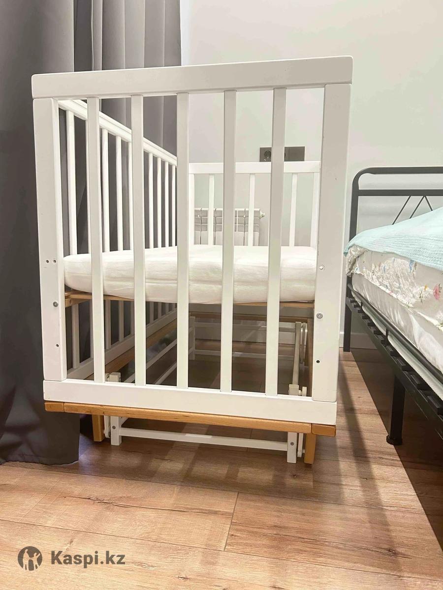 Продается кровать детская Happy baby mirra В комплекте ортопедический матрас, кроватка и маятник Спальное место регулируется по высоте, имеет 3 уровня Размеры спального места 120х60 Состояние хорошее, без видимых сколов и повреждении