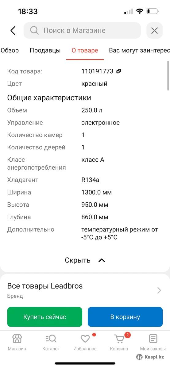 Продаётся витринные холодильники Leadbros для молочки. От -5 до +5. Размеры 1,8м за 250 000 тг и 1,3 метра за 230 000тг