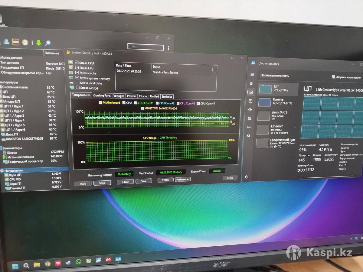I5 11400 f Ram 16gb 3200 Ssd 2 trb Rx550 ( 4gb ) B560 Deep cool 500w На корпусе есть небольшая вмятина смотрите на фото , любые проверки Видеокарта на гарантии , коробка и чек в наличии