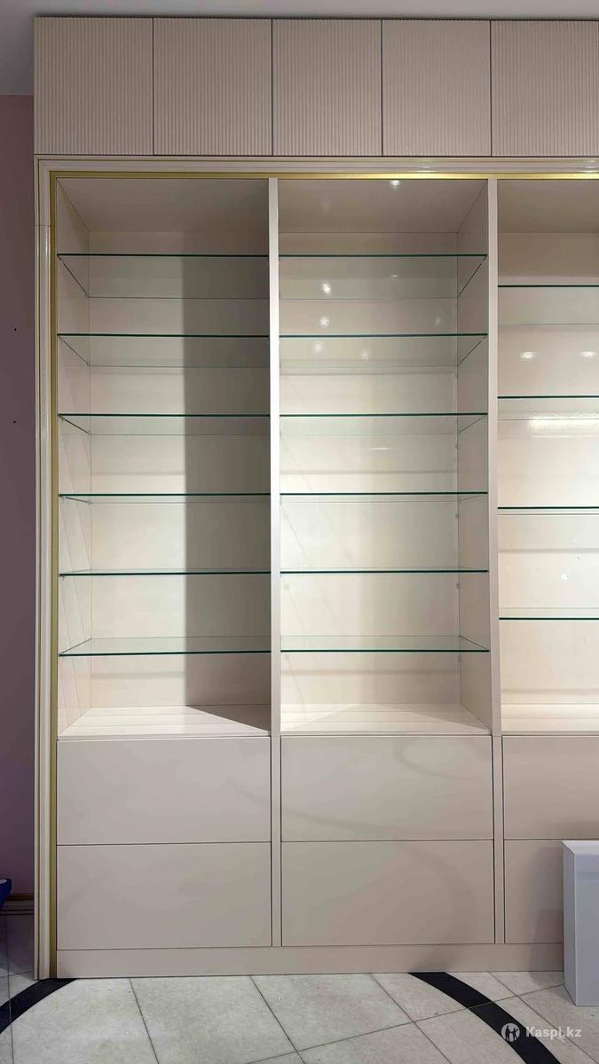 Продается торговое оборудование для магазина домашнего текстиля • Материалы: • Фасады и видимые части - МДФ в ПВХ • Корпус мебели - ЛДСП • Полки - прозрачное стекло 6 мм • Фронтальный фасад - распашной • Фасады антресолей на стеллажах - с фрезеровкой «Декор волна» • Столешница - искусственный камень, производство Корея • Подсобное помещение - ЛДСП с ПВХ-кромкой • Фурнитура и механизмы: • Направляющие выкатных ящиков TiOn - система «открывание от нажатия» • Особенности: • Мебель сборная, блочная - модули можно менять местами • Легко разбирается и транспортируется • Отличное состояние, качественное исполнение Подойдет для: бутика домашнего текстиля, одежды, шоурума, салона или магазина премиум-сегмента.