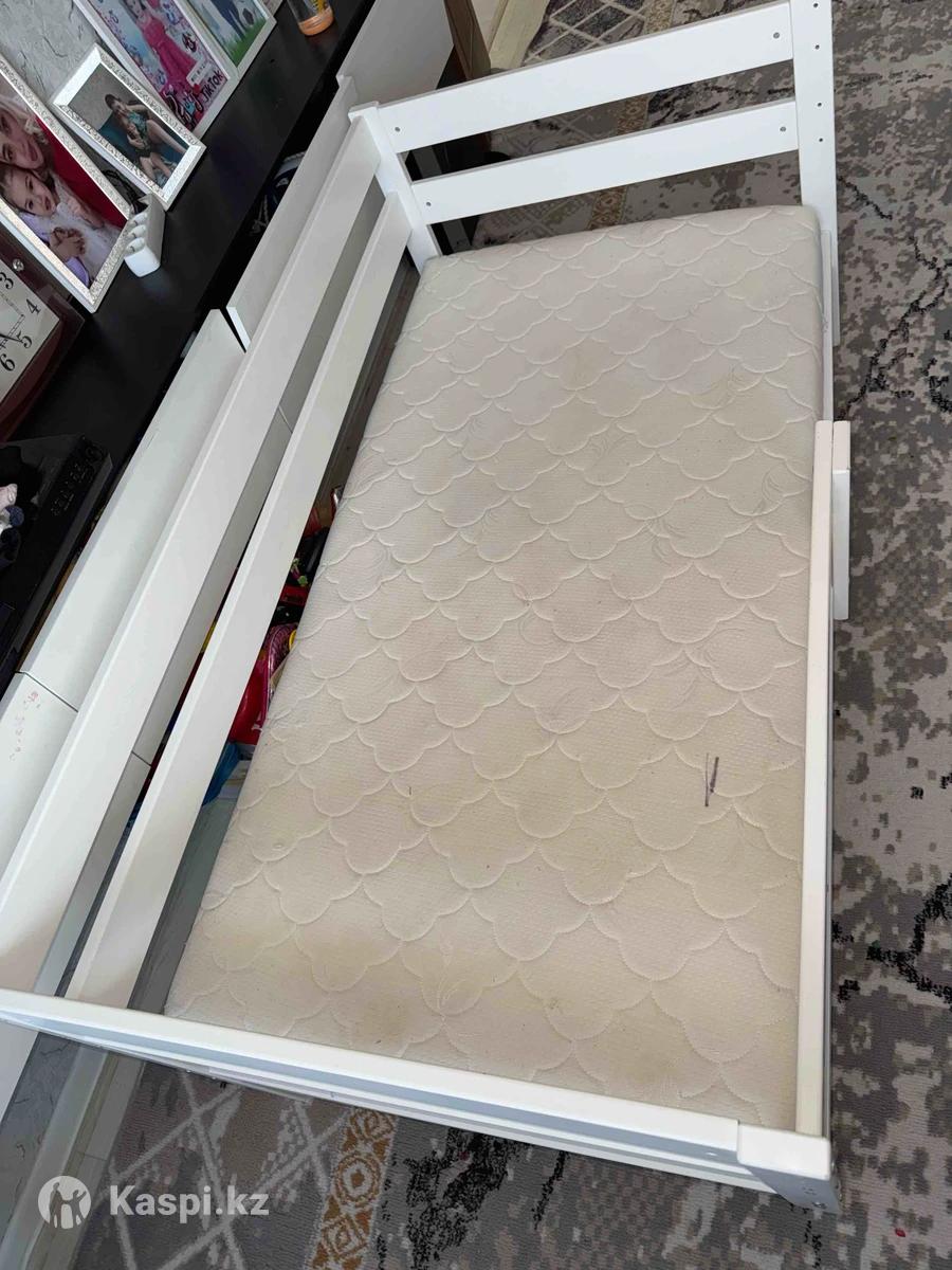 Продается кровать с матрасом. 16080. Состояние : хорошее. Все рейки целые. Без наклеек и прочего. Матрас не продавленный, после глубокой хим.чистки. Продаем, потому что детям взяли двухъярусную кровать. Самовывоз: Богенбай батыра 30. 30.000 тг, торга нет. писать на