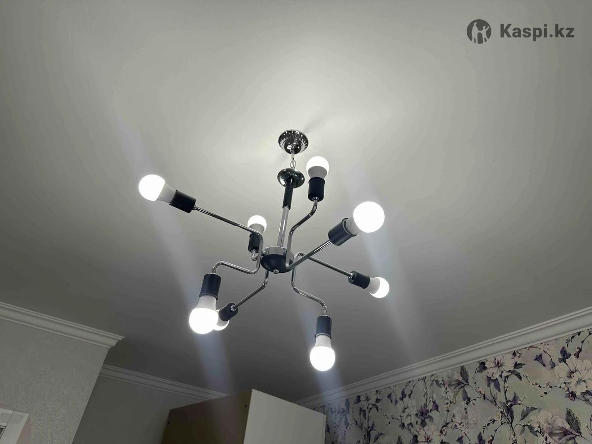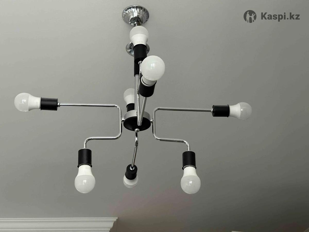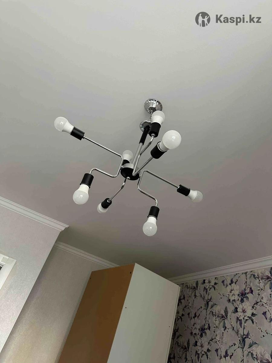 Продается люстра на 8 ламп Современная стильная потолочная люстра в хорошем состоянии. •На 8 ламп (цоколь Е27) •Подходит для гостиной, спальни или офиса •Дизайн: металл + черные элементы •Все лампы рабочие