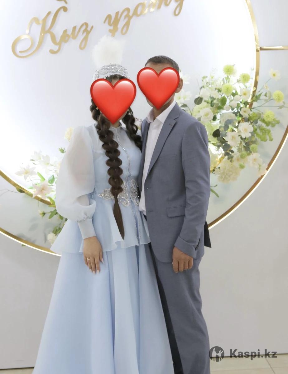 Цвет: нежно-голубой. Размер: универсальный (подойдет примерно 42–48, платье карсетное, камзол регулируется) В комплекте: платье + камзол с вышивкой (БЕЗ ГОЛОВНОГО УБОРА). Состояние: надето один раз, как новое. Идеально подойдет для қыз ұзату, национальных мероприятий или фотосессии. Цена: 200.000 (торга нет). ❗️Просьба: НЕ ЗВОНИТЬ — только писать
