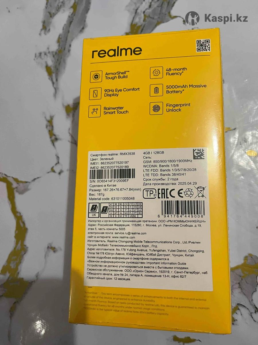 Продается абсолютно новый телефон 📱 в коробке запечатанный , полная комплектация. Марка телефона : Realme Note 60x Цвет: Зеленый Память: 128GB Все работает , заряд аккумулятора хватает на долго , телефон в отличном состоянии.