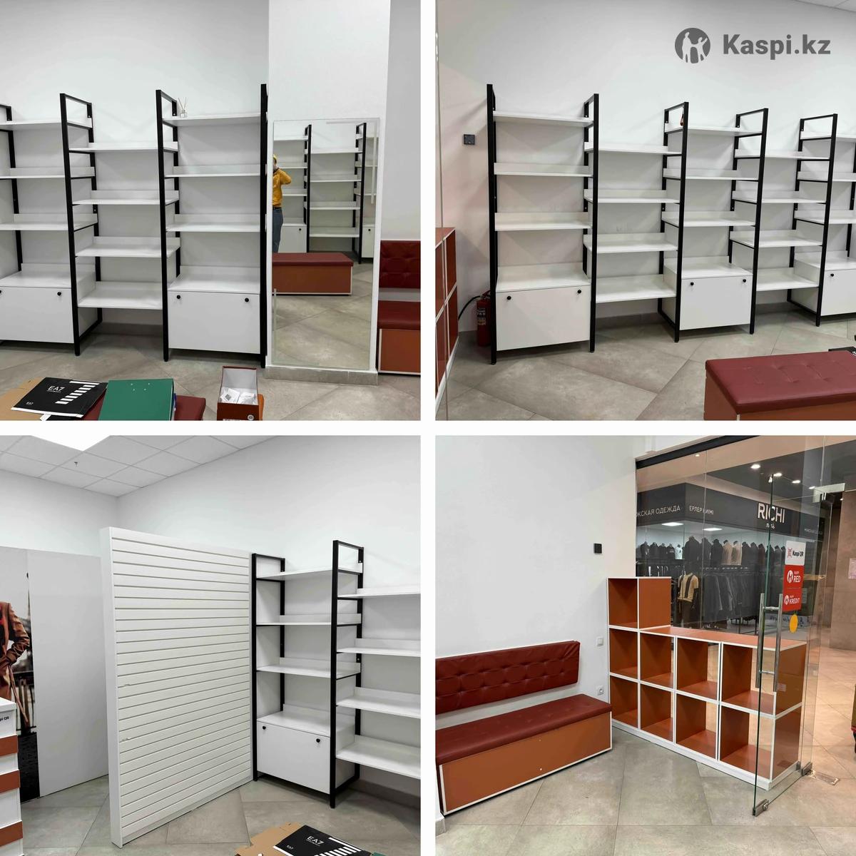 Срочно!!! Торг!!! 420 000 тг Продается оборудование для бутика. Было сделано под заказ, в аккуратном недолгом использовании для обувного бутика. Можно использовать под игрушки, постельное белье, сумки и тд Состоит из: 5 основных секций металл-дерево: внизу ящик для хранения, 4 полки в высоту, 95 см 2,2 м. между ними дополнительно 4 секции такой же высоты 87см ширина, без тумбы для хранения, только полки ресепшн 2 м длина, высота 1,15 м две тумбы по бокам внизу столешницы банкетки 3 штуки, внутри можно использовать под хранение. Из них две штуки по 1,2 м одна 1,5 м настенная витрина под обувь или штучный товар 2 м в ширину, высота 2,2 м выставочные кубы - 20 штук, 5045 см 2 подиума под эти кубы длина 195 и 180 ширина по 46см. складские стеллажи 4-хсекционные 87 см2,2м 5-секционные 95 см2,2 м 3секционные 862,2 м зеркало в пол По запросу скину фото, видео или более подробную информацию.Реальному покупателю скидка!