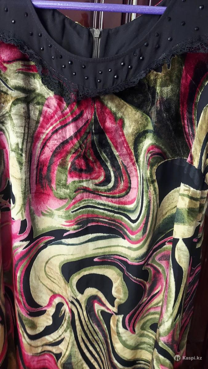 Продается помбархат платье на шифоне. Длинное с коротким рукавом. Подклад дышащий. Качество бархат хорошее.