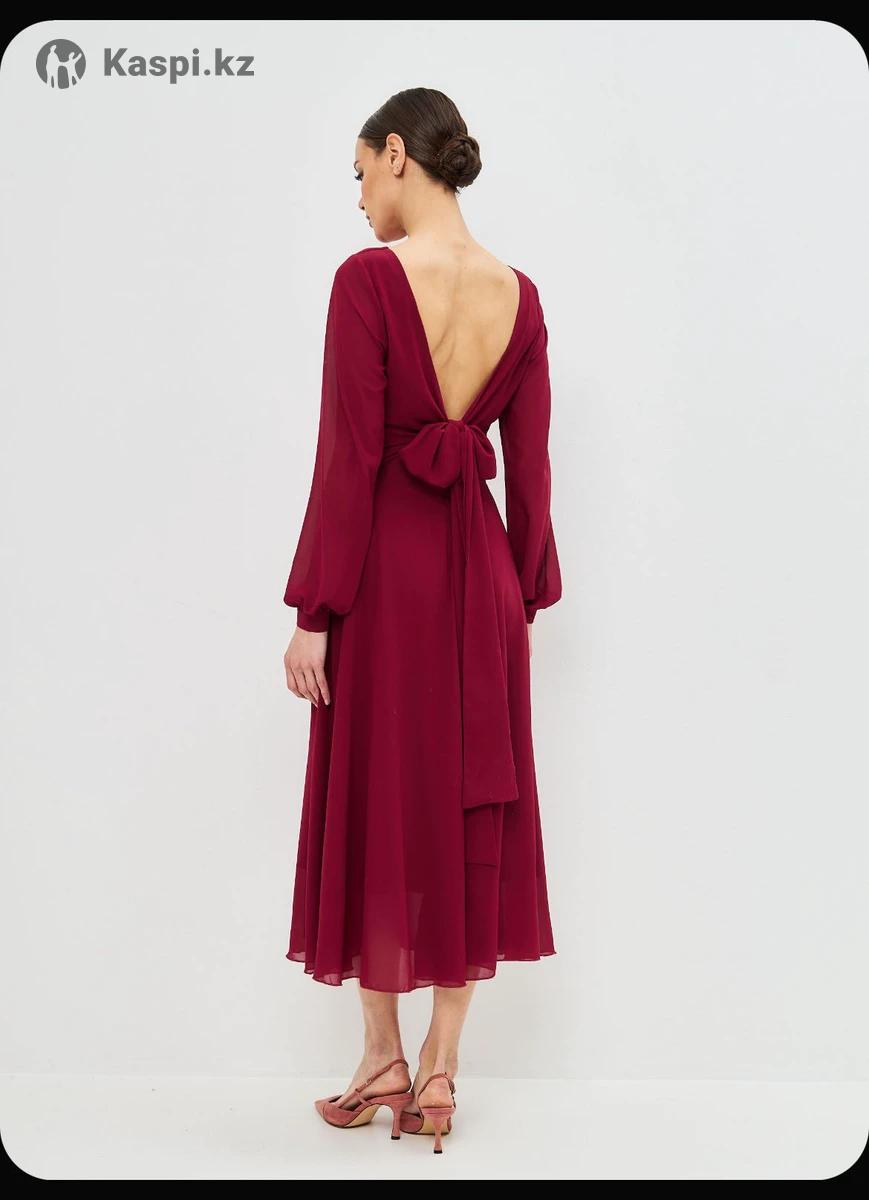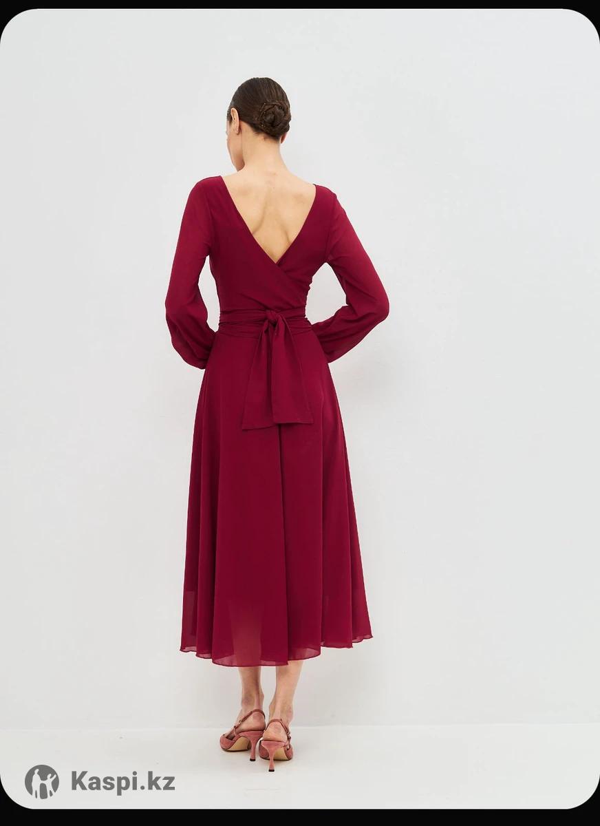 Шифоновое платье бордового цвета Состояние: новое Размер: 42 Материал: шифон Элегантное платье миди из легкого шифона. Бордовый цвет, длинный рукав, подчеркнутая талия, свободная юбка. Подходит для торжественных мероприятий, праздников и вечерних выходов.