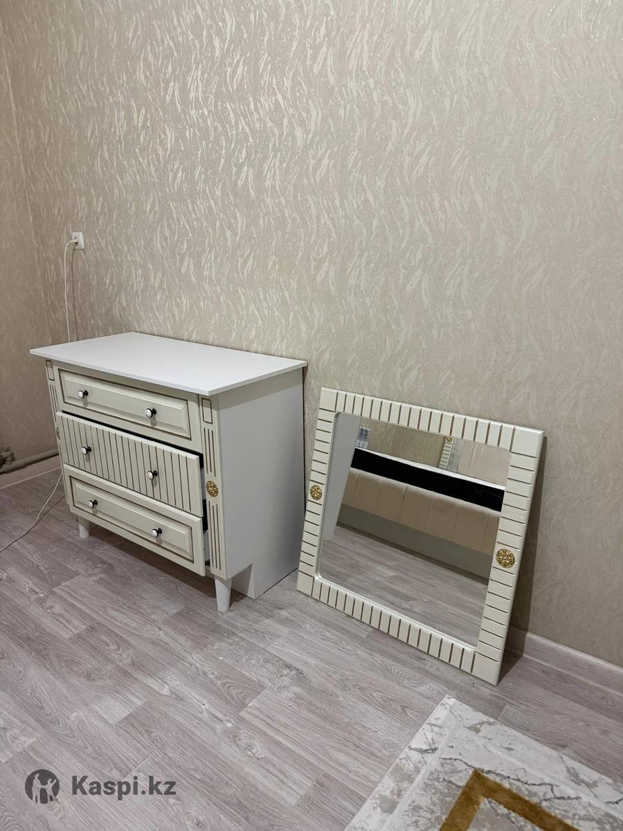 Продается спальный гарнитур, в комплекте имеется 1 большой шкаф с зеркалом(то что черные это зеркало, мы ее перевернули внутрь) туалетный стол с зеркалом, 2 тумбочки, кровать с матрасом. Был в использовании 2-3 месяца, использовался аккуратно. Был куплен за 800 тыс, продам за 350.000. Торг есть