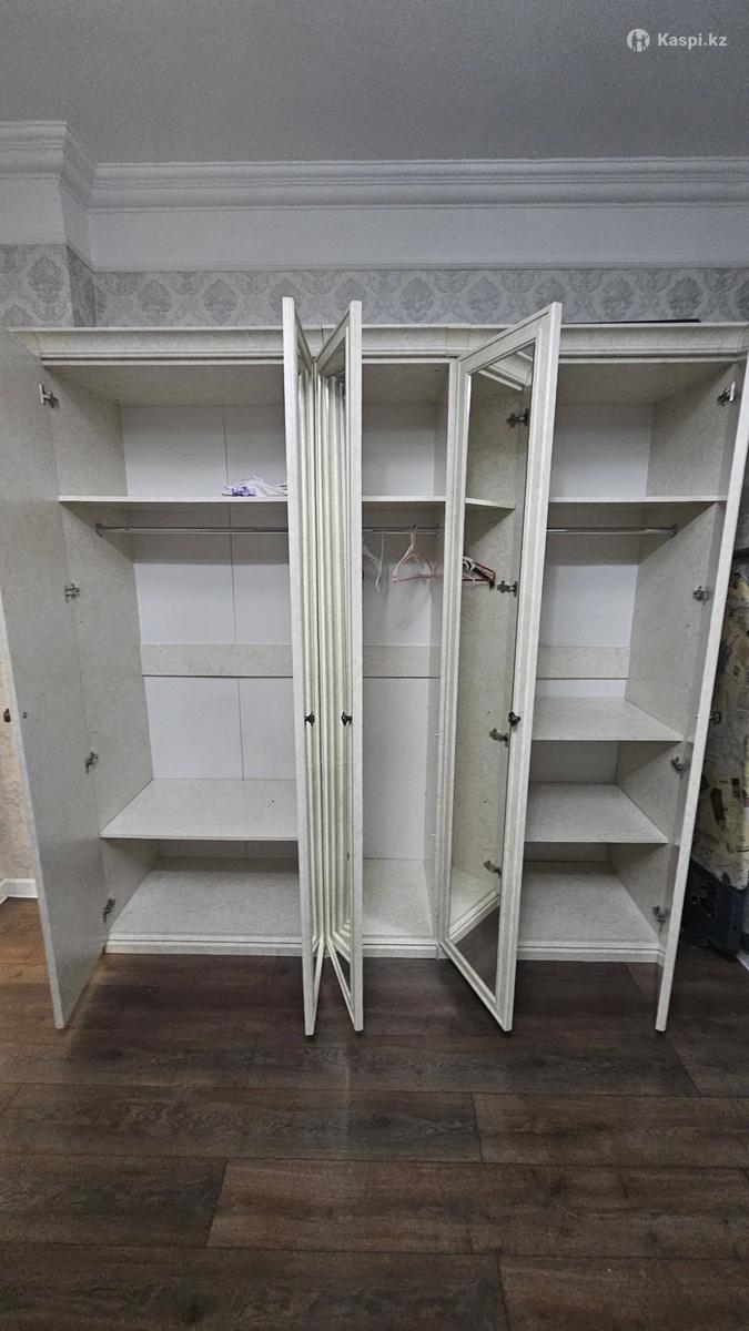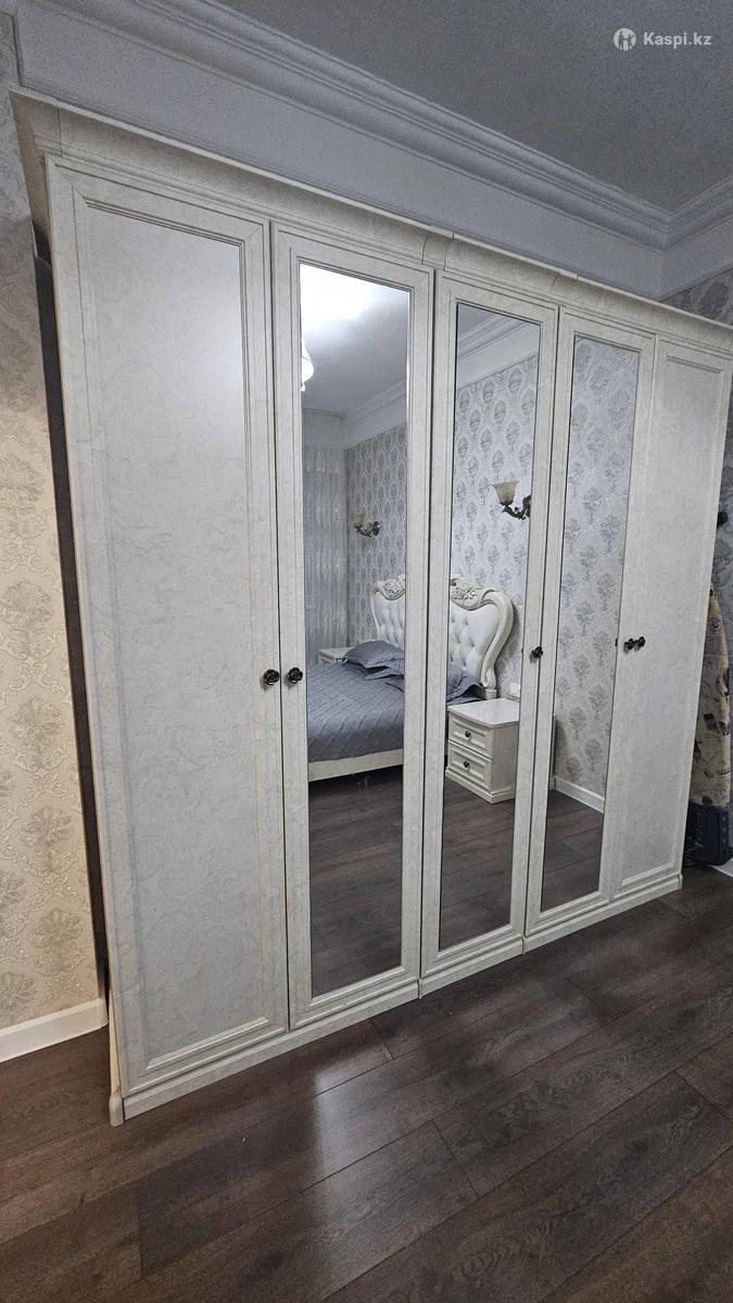 Продам красивый спальный гарнитур в классическом стиле. В комплект входит: — большая двуспальная кровать — 4-дверный шкаф с зеркалами — комод с большим зеркалом — 2 прикроватные тумбы Очень красивый и солидный гарнитур, отлично смотрится в интерьере. Светлый классический цвет, мягкое изголовье с декоративной стяжкой. Шкаф очень вместительный, есть зеркальные двери. Комод с большим резным зеркалом. Состояние отличное, всё чистое и аккуратное. Отличный вариант для спальни, смотрится дорого. Цена: 180 000 тг, разумный торг при осмотре.