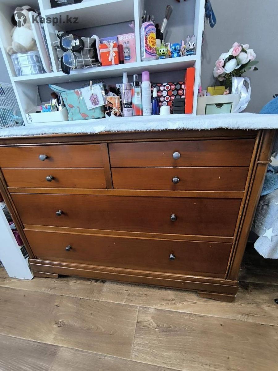 Продается спальный гарнитур СРОЧНО Шкаф с зеркалом (длина-182 высота-208 ширина-61) Комод (длина-116 высота-83 ширина- 47) Двухспальная кровать с матрасом (высота спинки-100 длина-215 ширина-148) Прикроватные тумбы 2 шт (высота-65 длина-51 ширина-33) Натуральное дерево В хорошем состоянии Самовывоз Майкудук цена 120000