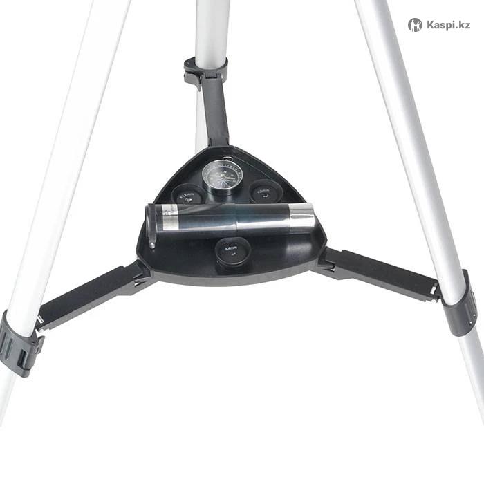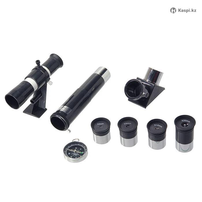 Тип телескопа: рефрактор (линзовый) Оптическая схема: ахроматическая (коррекция хроматических аберраций) Диаметр объектива (апертура): 60 мм Фокусное расстояние: 700 мм Относительное отверстие: f/11.6 Максимальное полезное увеличение: ≈ 120× (теоретически по оптике) Максимальное увеличение с аксессуарами: до ≈ 262× (с линзой Барлоу и самым коротким окуляром) Разрешающая способность: 2.1 угл.сек Максимально достижимая звездная величина: 12m Посадочный диаметр окуляров: 1.25″ Искатель: оптический 6×24 📍 Можно использовать и как астрономический телескоп, и как мощную зрительную трубу днем — для наблюдения наземных объектов. 🔭 С его помощью начинают наблюдения таких объектов, как: Луна — кратеры и рельеф поверхности. Планеты Солнечной системы — диски Венеры, Марса, фазы Юпитера и его спутники, кольца Сатурна (в зависимости от условий наблюдения). Яркие звездные объекты — отдельные яркие звезды и скопления до 12 m.