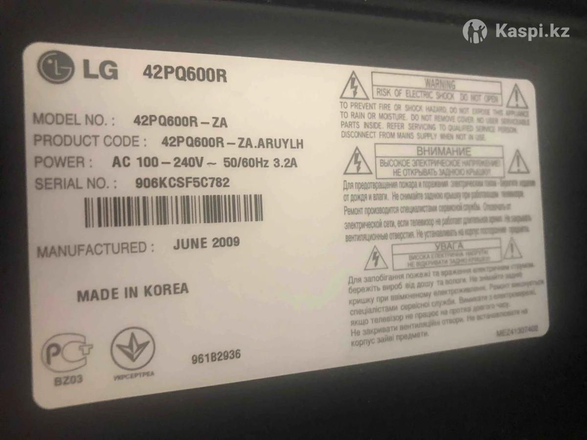 Продается телевизор LG в хорошем состоянии. Производство Корея.Старая модель тяжелый но качество хорошее. С кронштейном. Размер по см 100 на 65 большой. Самовывоз район пирамида. Торг!