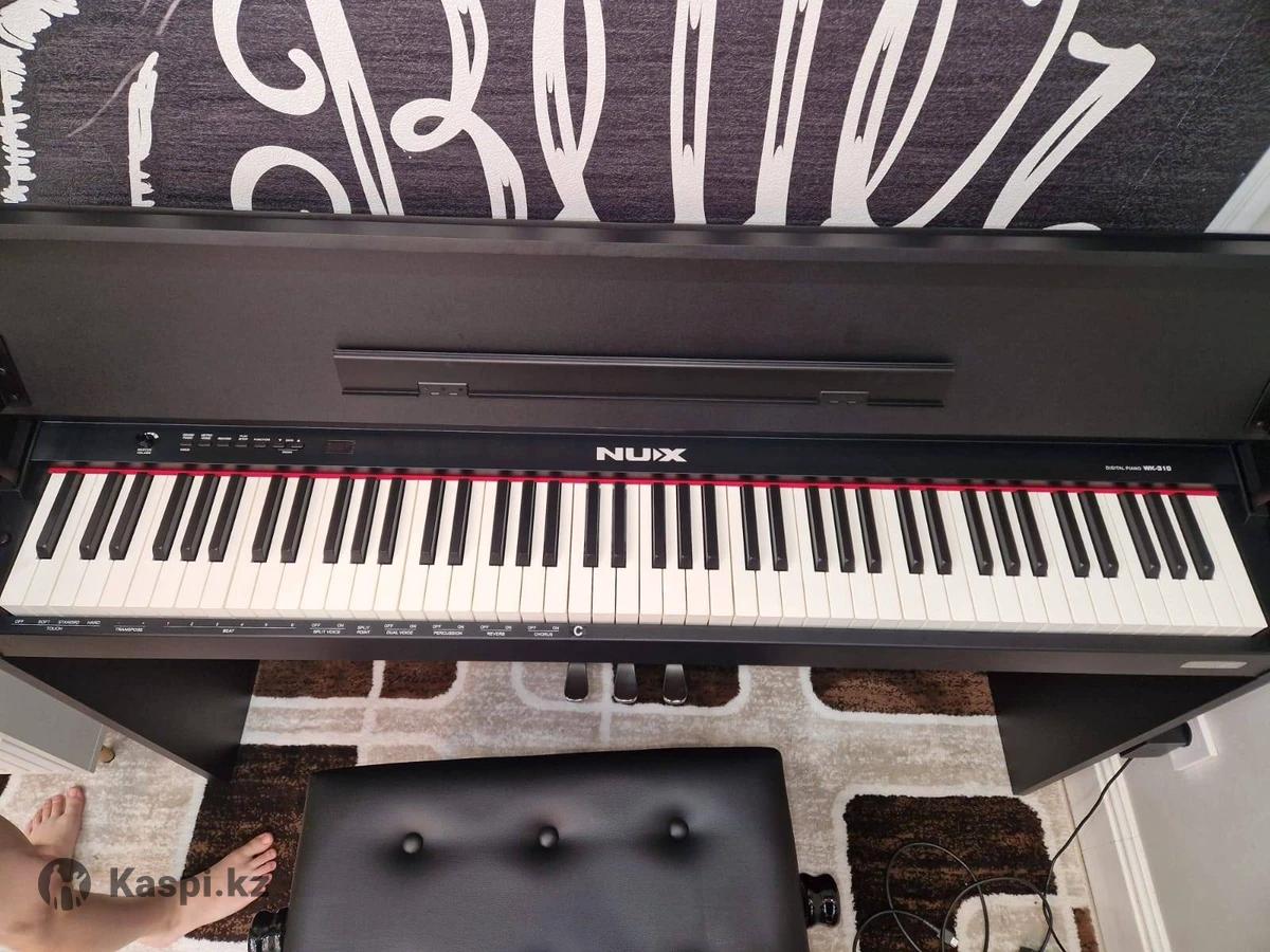Продается цифровое пианино Nux WK-310 BK +банкетка Цена: 270 000 тг цена на каспи345 Город Караганда Состояние: почти новое, пользовались 2 месяца (куплено 6 месяцев назад) Описание: Отличный цифровой инструмент на 88 полновзвешенных клавишах с молоточковой механикой. Имеет богатый функционал: — 128 встроенных тембров — полифония 180 голосов — функции разделения клавиатуры (split), наложения тембров (dual voice) — встроенные эффекты (реверб, хорус) — метроном (20–280 уд/мин), транспонирование ±12 полутонов — встроенная запись — Bluetooth 4.0, USB-MIDI, AUX IN/OUT, выходы для наушников — мощные динамики (2 × 10 Вт) — три педали (сустейн, смягчение, содержание) Инструмент имеет чистый, качественный звук. Подойдет как для обучения, так и для домашних занятий. Возможен осмотр, подключение к внешней акустике, проверка работы всех функций.