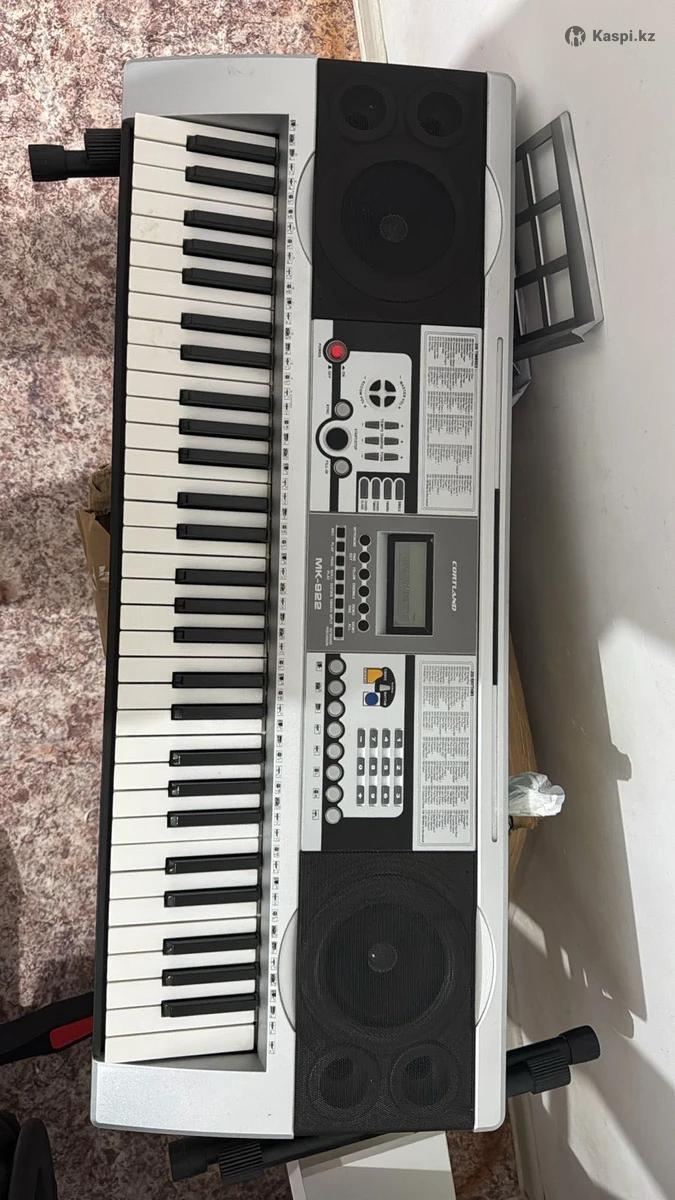 Модель: Cortland MK-882 Состояние: полностью рабочий Комплектация: синтезатор, блок питания, стойка Основные характеристики: • Клавиатура: 61 клавиша (полноразмерные) • Встроенные динамики: стерео •Тембры: множество встроенных звуков (пианино, орган, синты, струнные и др.) •Ритмы / автоаккомпанемент: есть •Demo-режим: Demo One / Demo All • Выход под наушники • Регулировка громкости • Функции: •Split (разделение клавиатуры) •Sustain •Vibrato •Metronome •One Key / Follow / Ensemble •Запись и воспроизведение (REC / PLAY) •LCD-дисплей Питание: от сети (блок питания в комплекте) Подходит для: •начинающих •обучения •домашнего использования •детей и подростков Внешнее состояние хорошее, все кнопки и клавиши работают корректно.