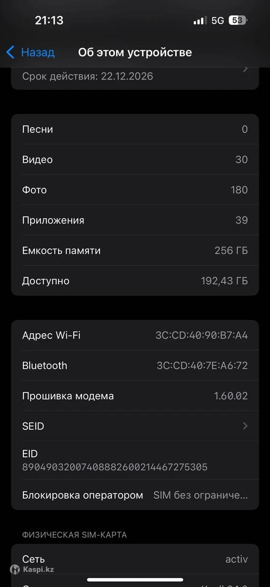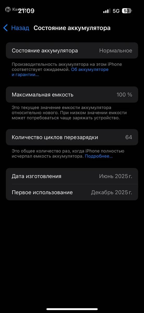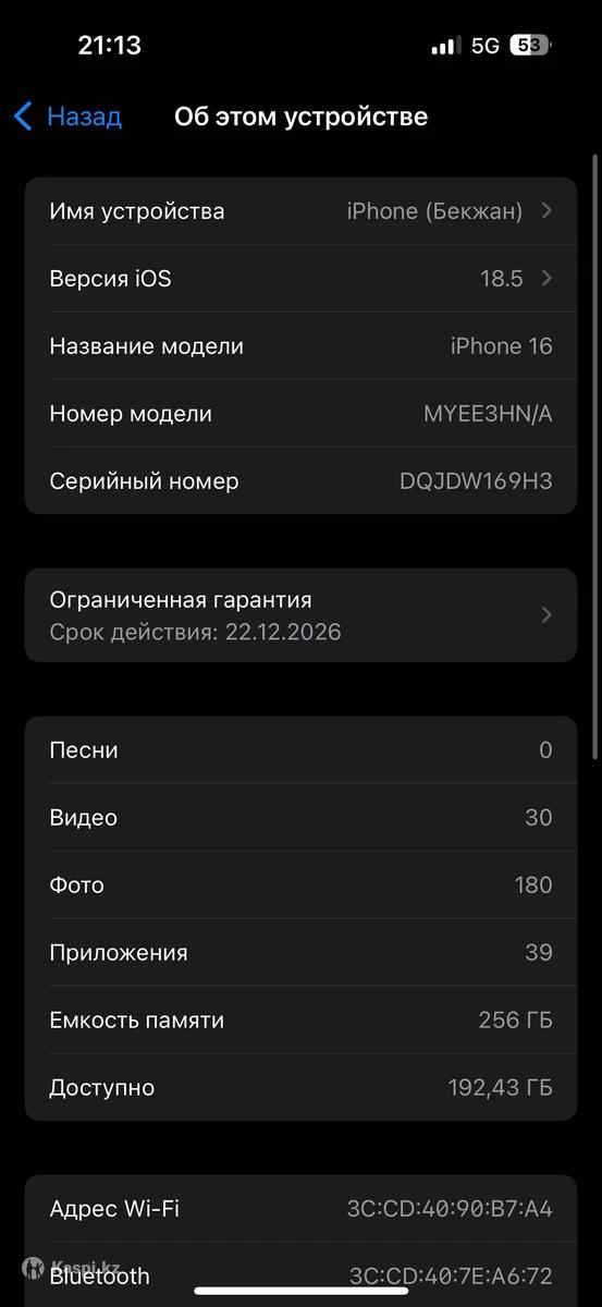 Продам iPhone 16, 256 GB Состояние — идеальное, как новый. 🔹 Куплен в декабре 🔹 Первое использование 🔹 Аккумулятор: 64 цикла 🔹 Гарантия Apple — еще 11 месяцев 🔹 Face ID, True Tone — все работает 🔹 Не вскрывался, не ремонтировался 🔹 iCloud чистый, отвязан 🔹 Комплект: коробка, кабелье 📍 Проверка при встрече 📍 Любые проверки приветствуются 💰 Цена: 400.000 тг (торг уместен) Причина продажи: «нужны деньги» 📞 Пишите / звоните