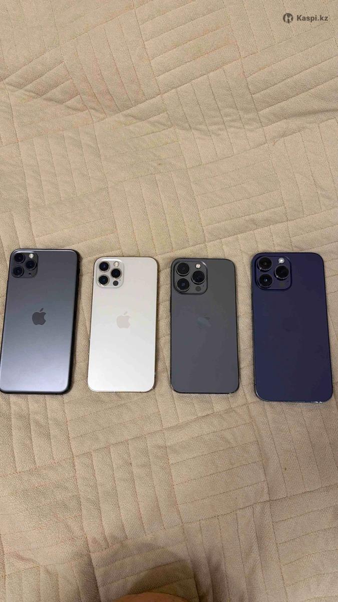 Продаю несколько iPhone в отличном рабочем состоянии. Все телефоны официальные, покупались лично. Без коробок, полностью исправны. Модели и цены: • iPhone 11 Pro Max – 512 GB — 100 000 тг • iPhone 12 Pro – 512 GB — 150 000 тг • iPhone 13 Pro – 256 GB — 200 000 тг • iPhone 14 Pro Max – 1 TB — 300 000 тг Все телефоны использовались аккуратно, носились в плёнках и чехлах. Проверка при встрече приветствуется. Разумный торг возможен.