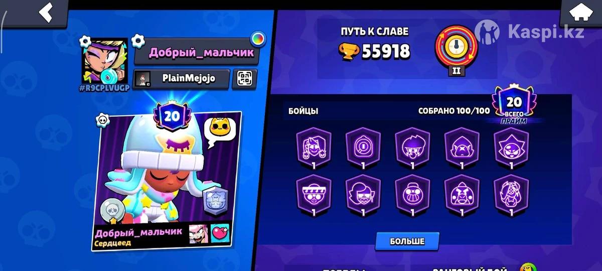 55k кубков и все персонажи есть, 2 раза покупал бравл пасс, в лс могу показать все эксклюзив скины