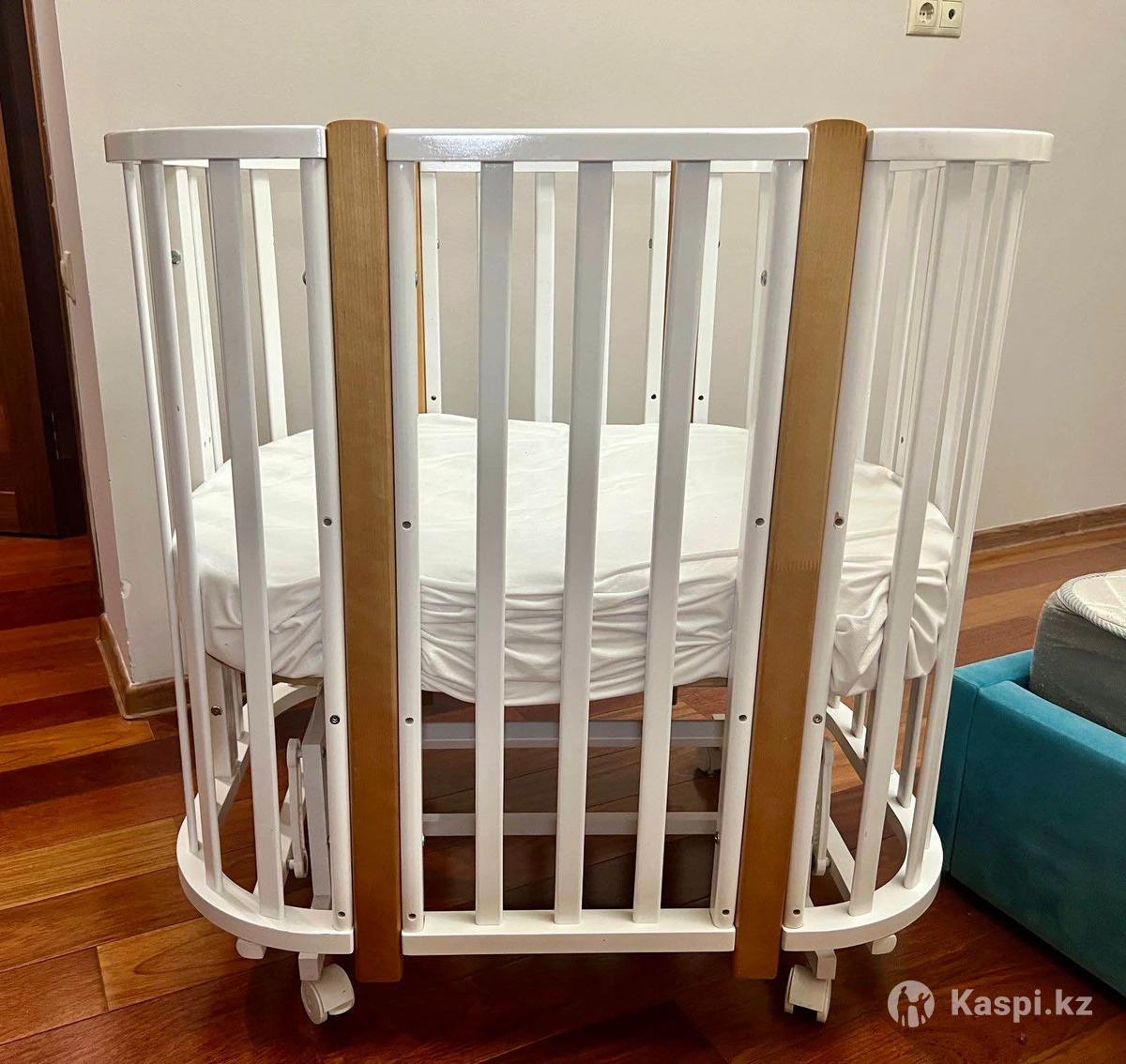 Happy Baby Детская кроватка трансформер Mommy Lux, люлька для новорожденных от 0 до 7 лет, с маятником, колесами, приставная, ребенок не спал, матрас новый