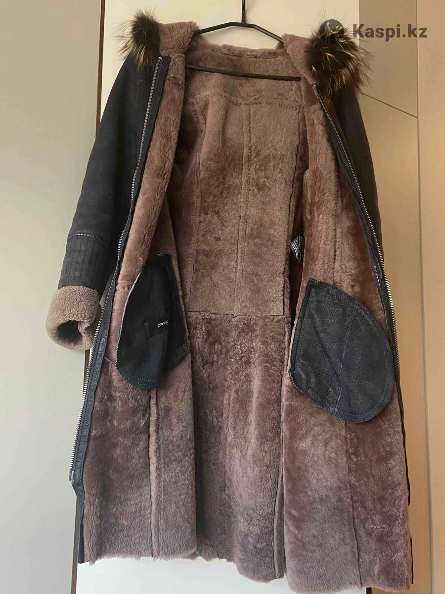 Дубленка элегантная, натуральная кожа, с капюшоном отделанным натуральным мехом, внутри мягкий мех из натуральной овчины, удобные карманы по бокам, застежка на молнии. Легкая и очень теплая. В отличном состоянии, без потертостей, дефектов и следов носки. Фирма “TOTOGROUP”