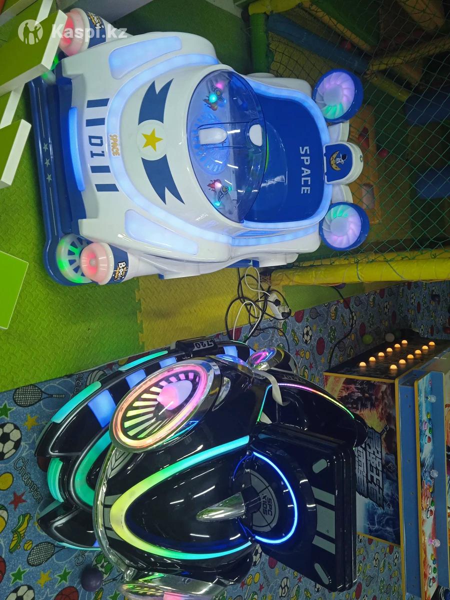 Продам детские игровые машинки-аттракционы Продаются 2 яркие и привлекательные машинки для детской зоны отдыха или торгового центра. Отличное состояние Подсветка и звуковые эффекты Подходят для детей от 2 до 8 лет Идеально для установки в ТЦ, кафе, детских клубах Привлекают внимание детей и родителей! Описание: 1. Черная модель SPC X105 — современный дизайн в стиле космоса, мягкая посадка, неоновая подсветка. 2. Бело-синяя модель D1 SPACE — оформлена как полицейская машина с ушками, с удобной кабиной и декоративной анимацией. Находятся в Алматы По всем вопросам обращаться на 87086
