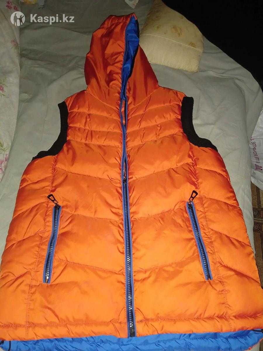 Жилет 2 штуки размеры 44,46,48, оранжевый цвет белый черный, удлиненный на синтепоне черного цвета. На замке и клепках Москва.