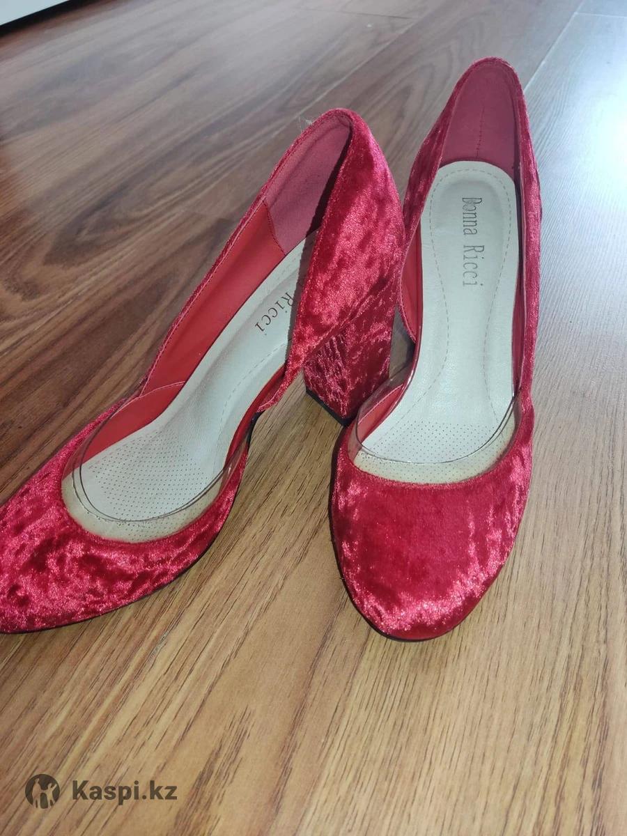 Шикарные красные туфли, устойчивый каблук.