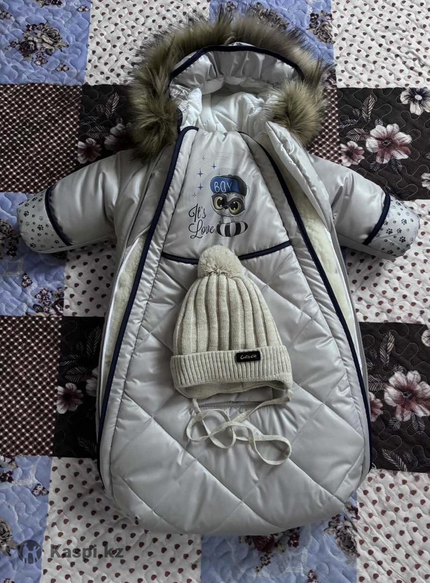 Конверт зимний для выписки теплый для мальчика в идеальном состоянии б/у 1 раз. Подарок шапочка