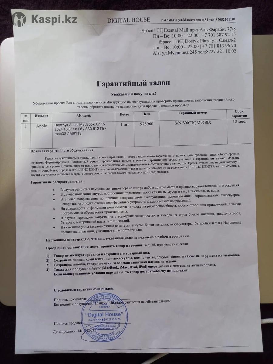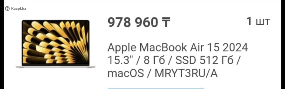 Apple MacBook Air 15 2024 . Новый ,только активирован ,не пользовались ,все документы ,коробка и тд. Гарантия. Мышка в подарок