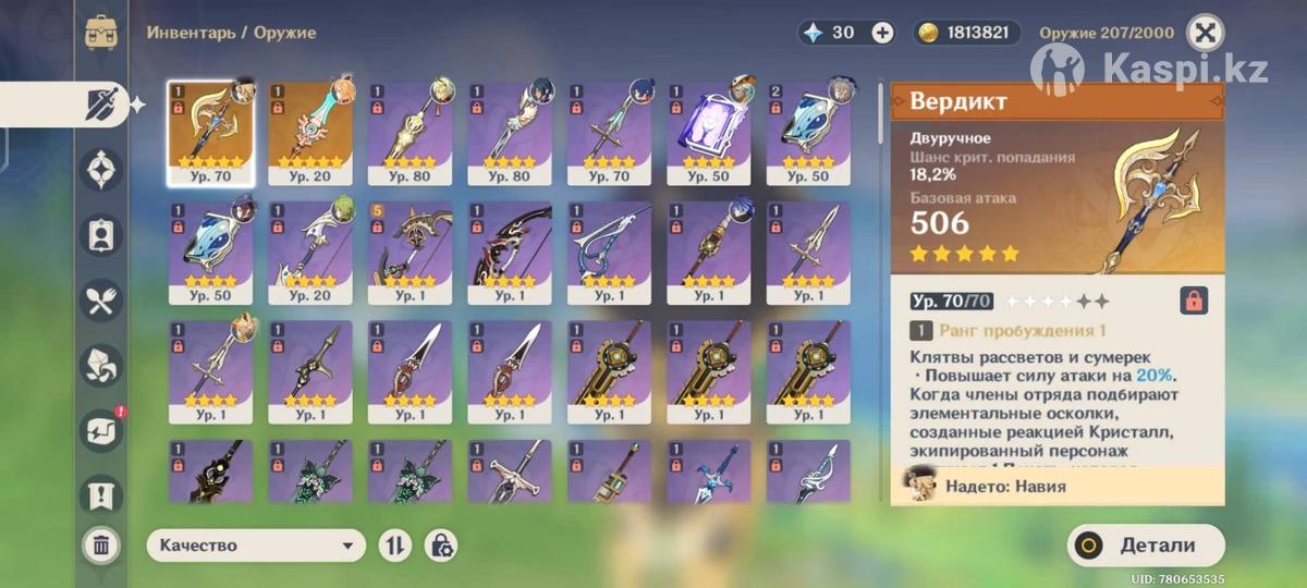 Продам ак в геншин импакт, персы и оружки на фото, есть ещё много контента