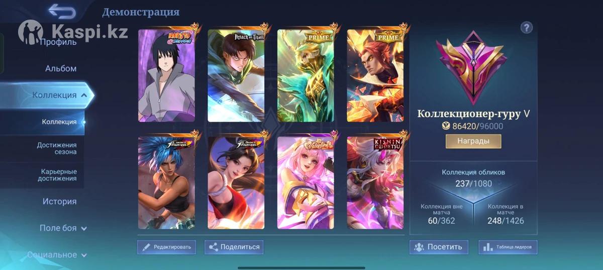 🌀 Продам аккаунт Mobile Legends (коллаб Naruto, Lightborn, редкие скины) Продаю мощный и прокачанный аккаунт Mobile Legends с редкими скинами и высоким рейтингом. Аккаунт подходит как для игры, так и для коллекционеров — есть дорогие и лимитированные облики. --- 🔥 Основная информация: Лучший ранг: Мифическая честь 25 Коллекция: 199 скинов Статус коллекции: Знаменитый коллекционер III Сыграно матчей: 2569 Регион: East Kazakhstan (No.13 Грейнджер, восточный Казахстан) --- 🎴 ТОП редкие скины: 🌀 NARUTO Collaboration Саске Гаара Attack on Titan: Леви 👑 Lightborn серия: Tigreal Granger 🔥 Другие редкости: Kishin Demetsu LuckyBox эксклюзивы Karina (KOF) Плюс Клинт. --- 🏆 Достижения: Легенда мира ниндзя Бог среди людей Машина убийств Много сезонных ачивок Возможен обмен. Продаю в связи с не надобностью.