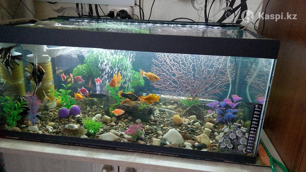 Продам аквариум вместе с рыбками 90литров размер 70 на 40 ширина 35