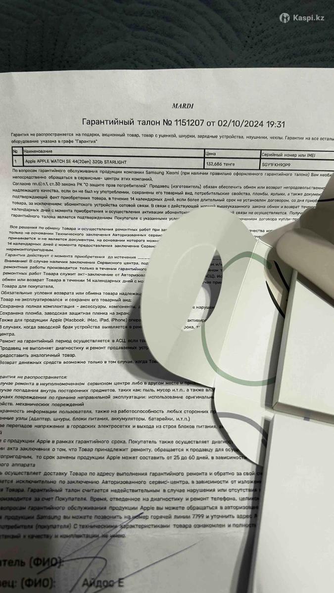 Продаю свои Apple Watch 2-го поколения, размер 44 мм, память 32 ГБ. Покупала 2 ноября 2024 года, использовала аккуратно.