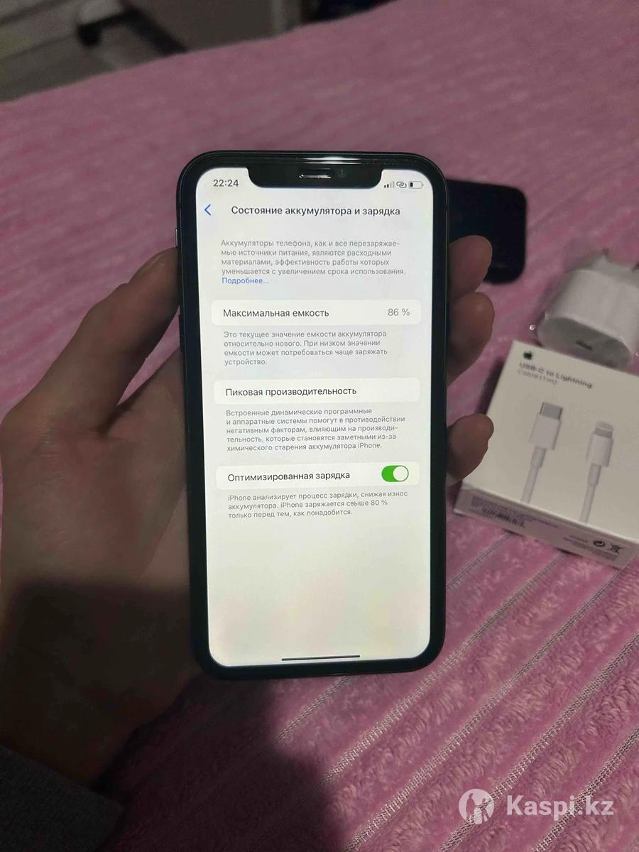 Продам Айфон 11 128гб В идеальном состоянии Face ID,True Tone работает Акб 86% В комплекте зарядка,чехол,стекло Цена 72.000 без торга!!!!