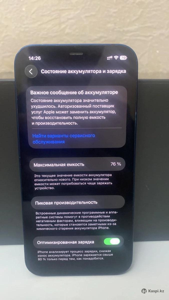 Продам айфон 12 в синем цвете, внешнее состояние 8/10 ,состояние аккумулятора 76%,память 64 гб, документы есть кроме зарядного устройство писать строго на из дефектов есть трещина на задней крыше телефона