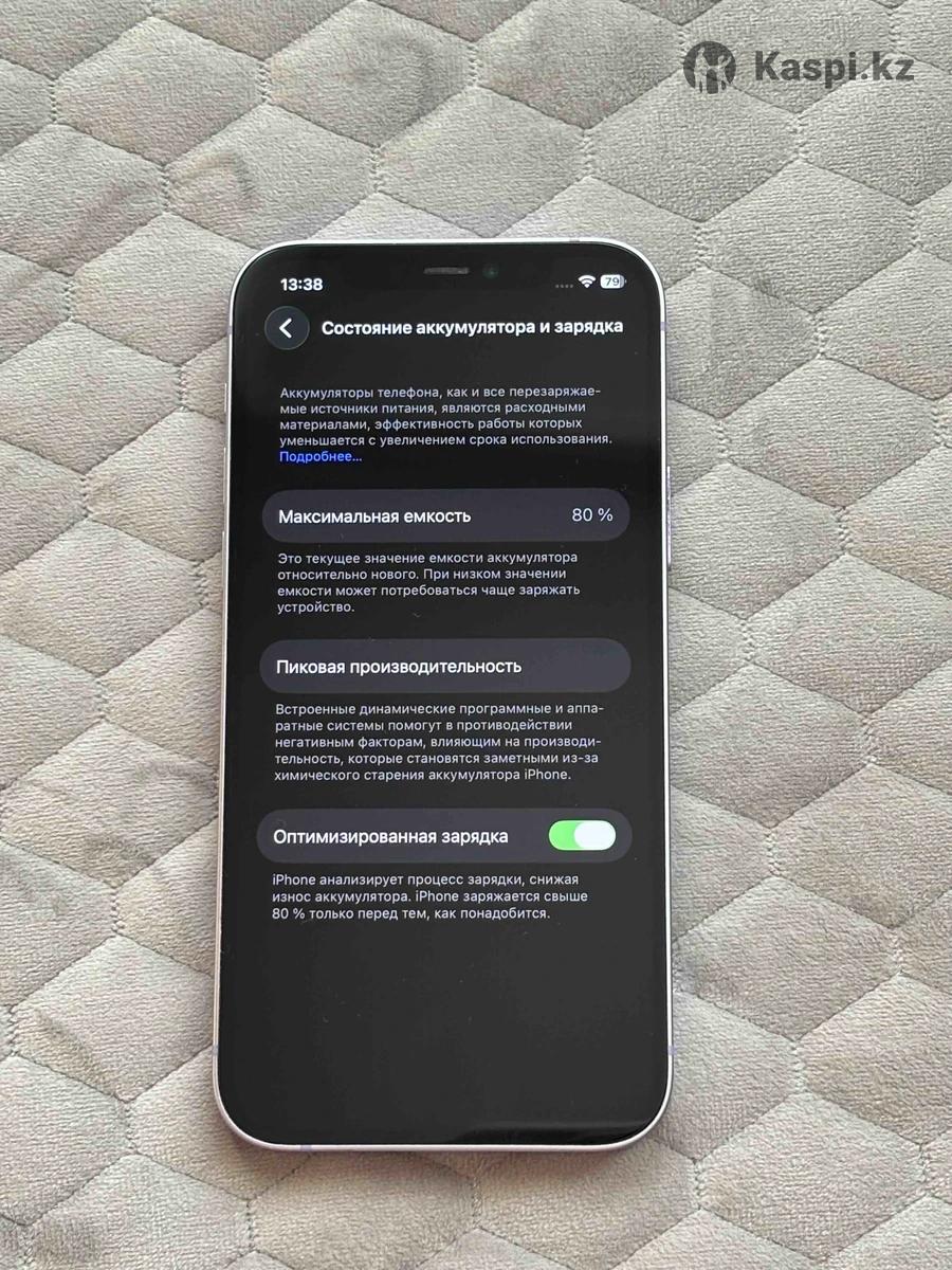 Продам iPhone 12 на 128 ГБ, цвет фиолетовый. Состояние отличное, полностью рабочий. Аккумулятор: 80% В комплекте: коробка + силиконовый чехол Не вскрывался, один хозяин. Установлены защитные стекла на экран и камеру Без блокировок, iCloud выйду при продаже. Причина продажи: покупка нового телефона. По всем вопросам: звонить , писать на номер указанный ниже.
