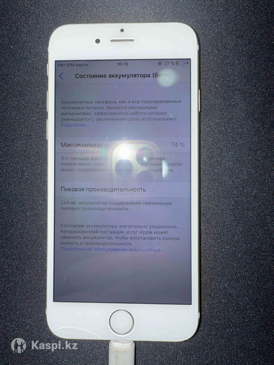 Продам айфон 6, в золотом цвете, аккум 74%, память 64гб, не лагает, внешний вид норм но есть одна трещина на внизу, работает исправно