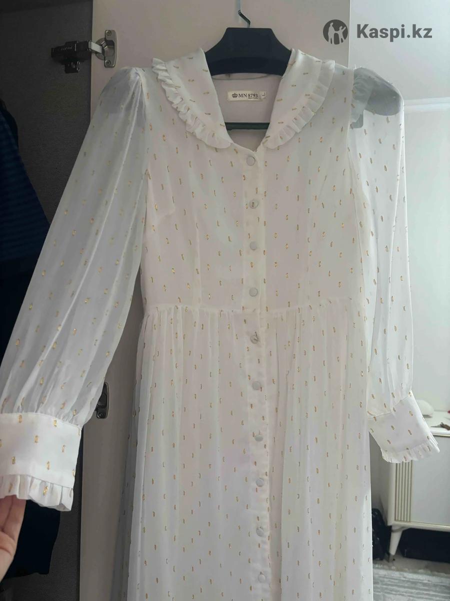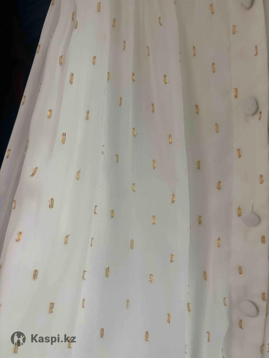 Белое платье шифон с золотистыми вставками, очень нежное платье, одевала 1 раз на татты чай и все, могу видео обзор скинуть на .