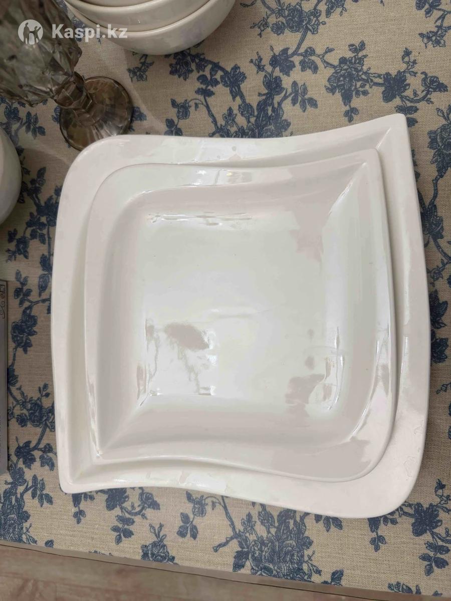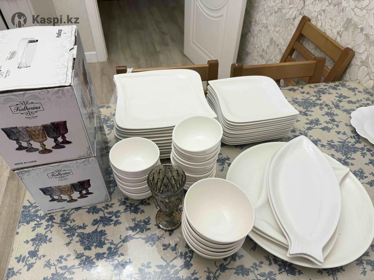 Продам посуду. 12 больших и 12 средних тарелок, 12 кесе, 12 бокалов, 1 стеклянный табак, 4 тарелки для салата, 5 суповых
