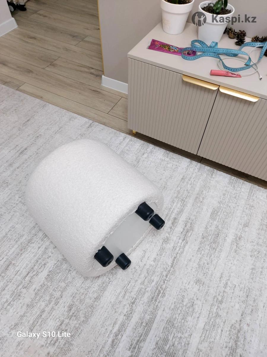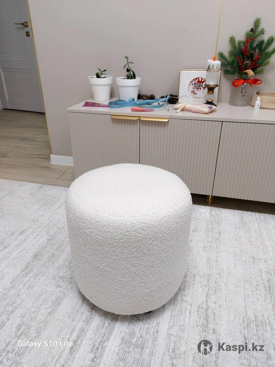 Белый пуфик высота 43 см вместе с ножками легкая элегантная ,удобная и материал классный как овечья,сидушка 43см